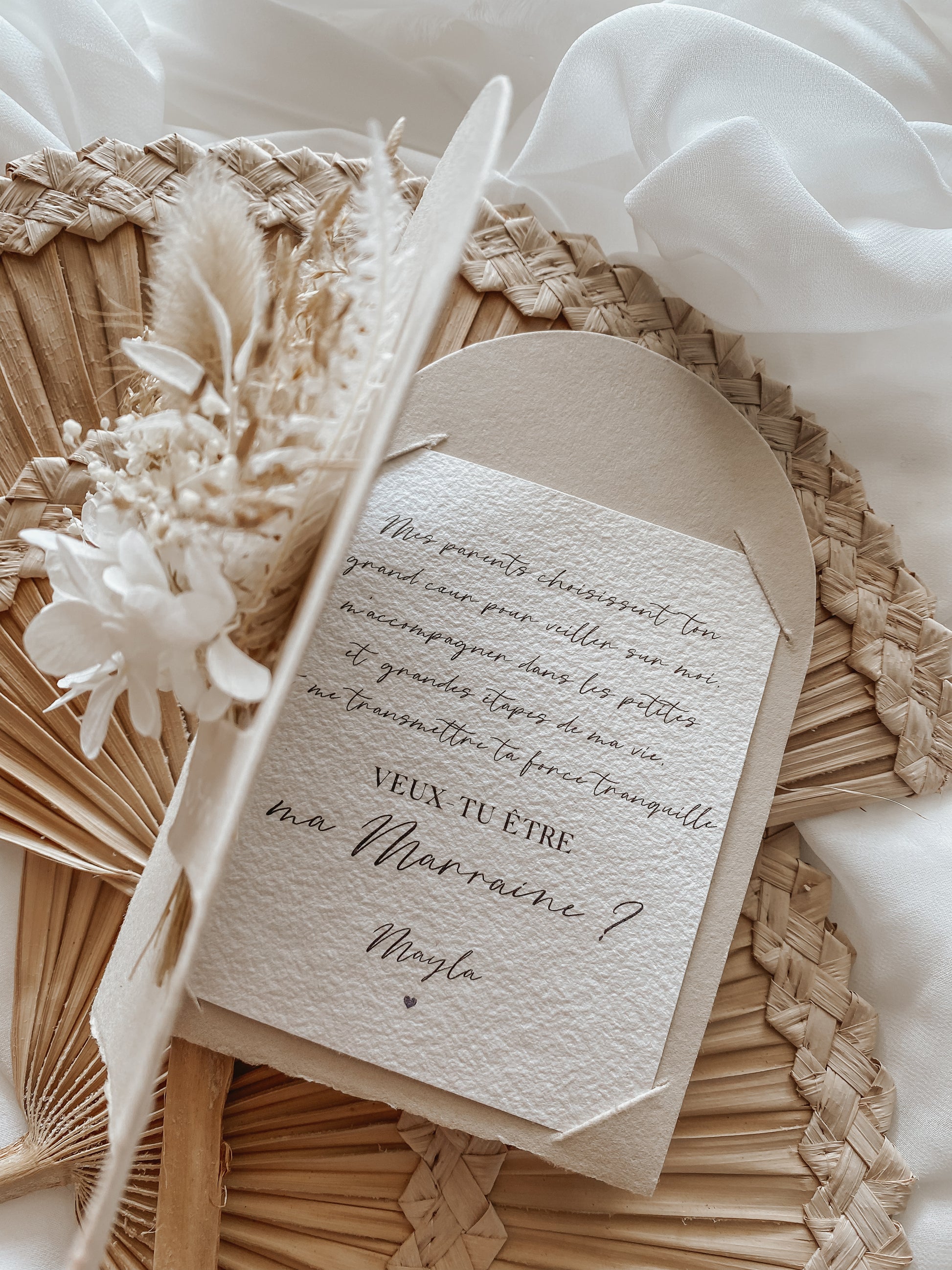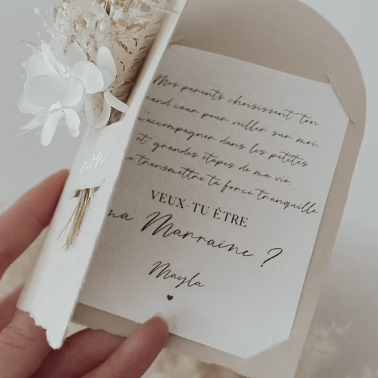 Demande marraine, annonce grossesse, ou un simple Je t'aime... Peu importe l'occasion choisie, cette carte personnalisée en papier coton accompagnera parfaitement vos petits mots doux !